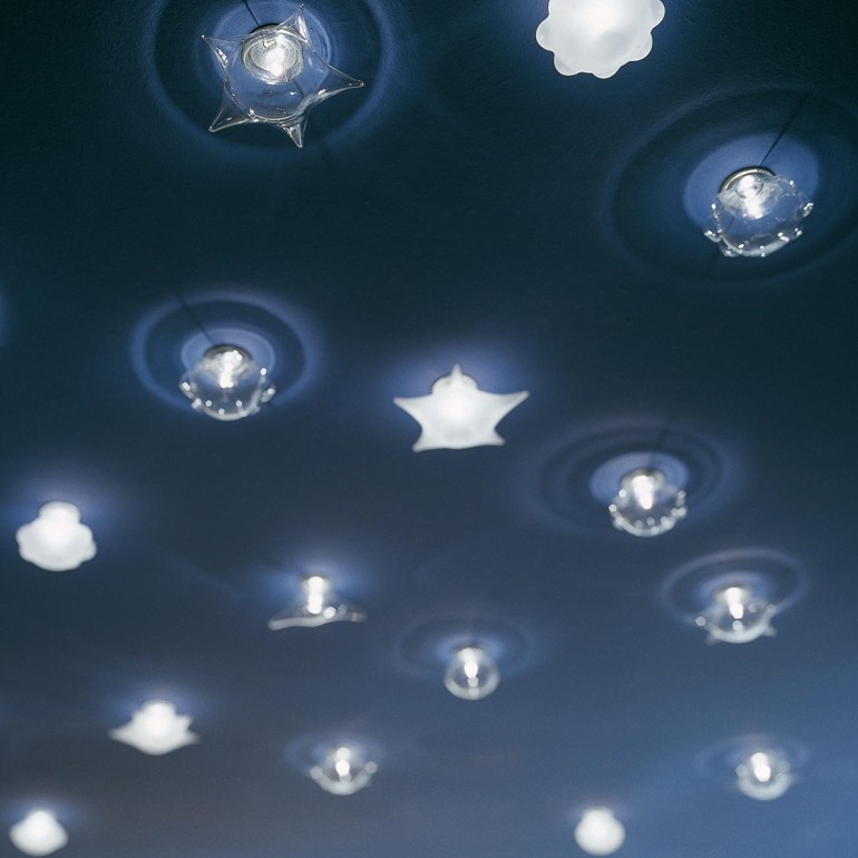 ALBUM – Pasticcini da incasso in vetro soffiato con finitura disponibile in vetro smerigliato o trasparente e possibilità di scelta tra quattro diversi modelli: Pianeta, Sole, Stella o Luna. I pasticcini da incasso sono dotati di portalampada G4 12v per l’utilizzo di lampadine Alogene da 20w o Led da 2,4w 2700K 300lm 12v entrambe escluse. Per il funzionamento è necessario l’alimentatore a 12v, non fornito in dotazione, che dovrà essere di potenza adeguata in base al numero di faretti che si intendono collegare oppure da 20w se si volesse optare per un alimentatore ogni lampada. ll foro da praticare per l'incasso, esclusivamente in ribassamenti di cartongesso, è di diametro 3,5/4 cm. e si richiede una profondità utile di 4,5 cm.
