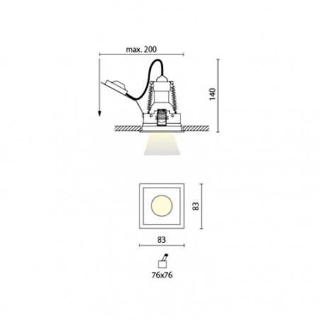 - 83x83 mm. - Foro per incasso 76x76 mm.