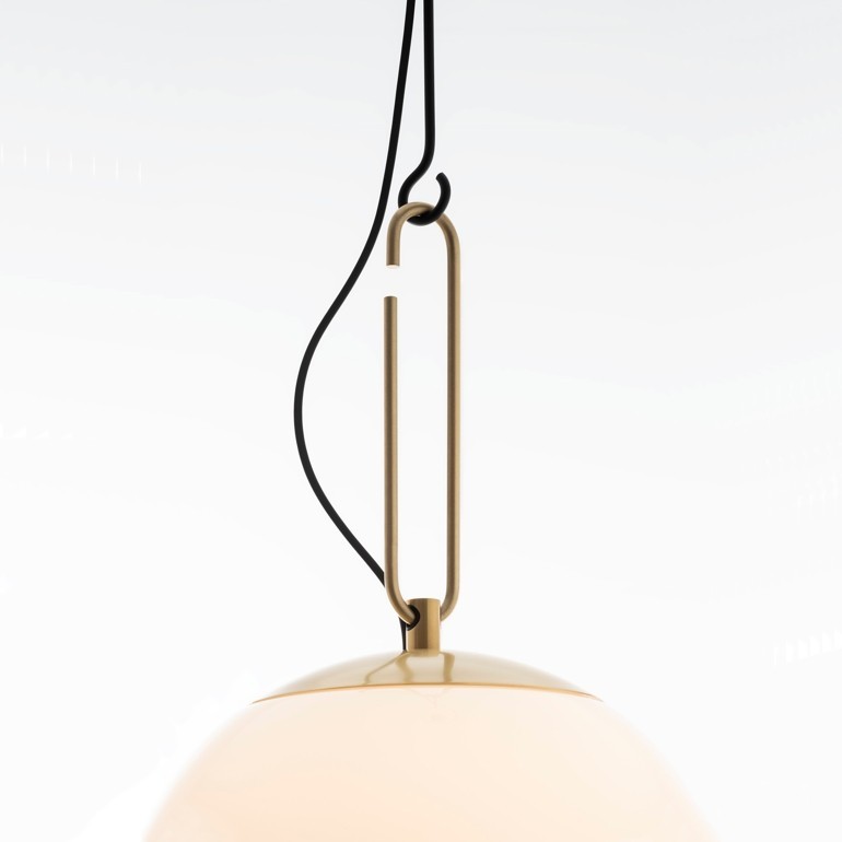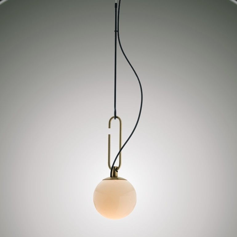 ARTEMIDE – Nh 14 è una sospensione dove l’elemento di base è una sfera in vetro soffiato bianco di diametro 14 cm con un anello in ottone spazzolato retto da un cavo. La lampada costruita volutamente con dei materiali in perfetta sintesi tra tradizione e innovazione, è dotata di portalampada E14 che permette di utilizzare lampadine Led da 5w esclusa.