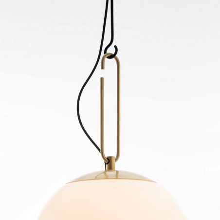 ARTEMIDE – Nh 14 sospensione, design Neri&Hu, è una sospensione essenziale che con semplicità e poesia si presta a illuminare diversi contesti. L’elemento di base della lampada nh 14 è una sfera in vetro soffiato bianco di diametro 14 cm con un anello in ottone spazzolato, collocato su una strutture che la sostiene. La lampada costruita volutamente con dei materiali in perfetta sintesi tra tradizione e innovazione, espressione di un design responsabile e sostenibile, è dotata di portalampada E14 che permette di utilizzare lampadine Led da 5w esclusa. Della stessa serie troviamo versioni da parete, tavolo, e terra.