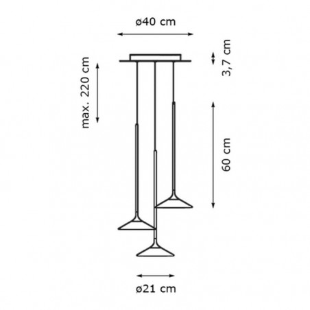 ARTEMIDE – Orsa Cluster 3  è un’elegante lampada a sospensione con tre sorgenti luminose le cui strutture di alluminio sono appositamente progettate per dissolvere il calore, mentre i sottili steli di metallo si allargano all’estremità inferiore per creare lo spazio per i 3 Led da 8,5w con temperatura colore 3000K e una resa totale di 1686lm le cui luci sono mascherata e rese invisibili da dei diffusori in metacrilato appositamente studiati.