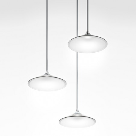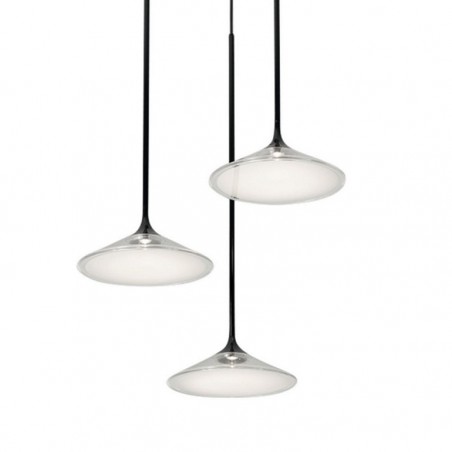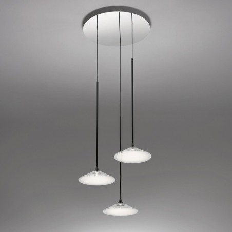 ARTEMIDE - Orsa Cluster 3, è un’elegante lampada a sospensione con 3 sorgenti luminose i cui elementi sono semplificati al massimo per permettere alla luce di delineare il volume stesso dell’oggetto, le cui strutture di alluminio sono appositamente progettate per dissolvere il calore, mentre i sottili steli di metallo si allargano all’estremità inferiore per creare lo spazio per i 3 Led da 8,5w con temperatura colore 3000K e una resa totale di 1686lm, Le sorgenti luminose sono coperte da un diffusore in metacrilato il cui stile e finitura assicura che la fonte di luce rimanga invisibile, trasformando le lampade in dischi di luce sospesi. Oggetto elegante e minimale, Orsa Cluster 3 è concepito per essere utilizzato sia singolarmente sia come parte di un’installazione più ampia.