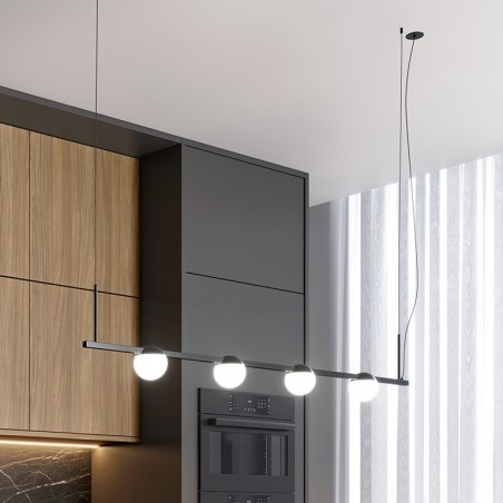 BIFFI LUCE - Cotton, disponibile a scelta con le sorgenti luminose tutte dirette verso il basso, due verso il basso e due verso l'alto o una nelle quattro diverse direzioni, è una sospensione dal design sofisticato, ideale per illuminare ambienti domestici così come spazi commerciali donando fascino e convogliando l’attenzione su di sé. Prodotto caratterizzato da un corpo in alluminio verniciato, corredato da sfere soffiate a mano artigianalmente in vetro TRIPLEX, per garantire il più alto grado di resistenza e sicurezza. Fornito di sorgente luminosa a LED da 40w 3000°K ad alta efficienza e relativo driver inserito in rosone rettangolare di dimensioni 240x41x27mm. Cotton è disponibile nelle tre colorazioni a catalogo bianco, nero e bronzo per integrarsi ed arredare con eleganza ciascun ambiente.