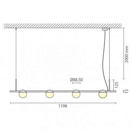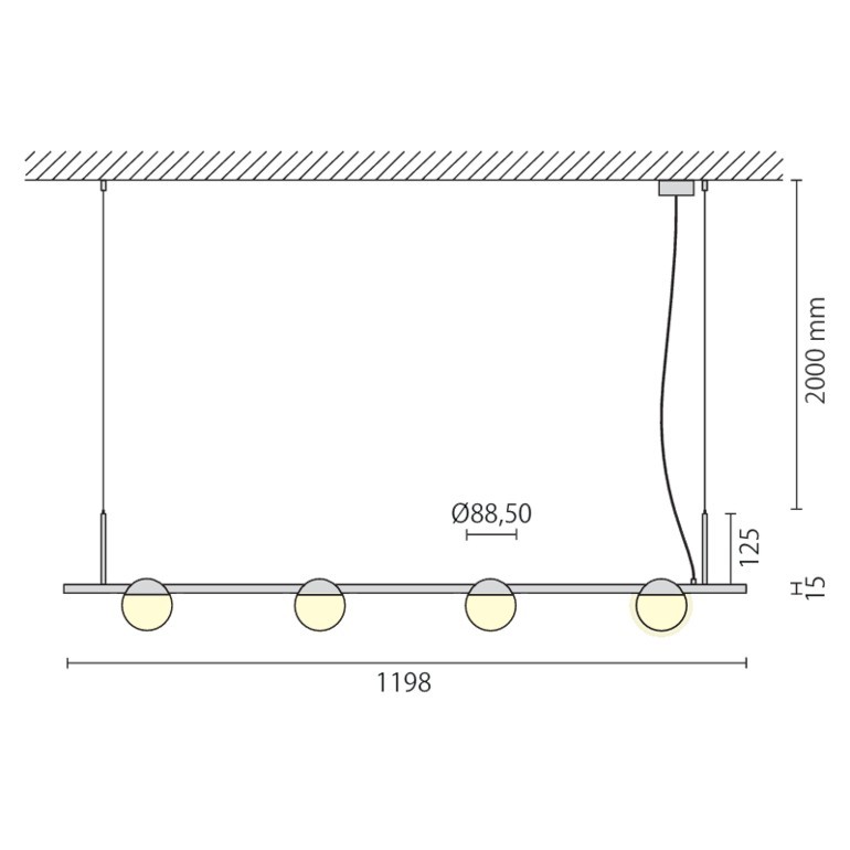 L1198x15 mm. - Sfere Ø88,5 mm. + Cavo 2000 mm.