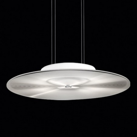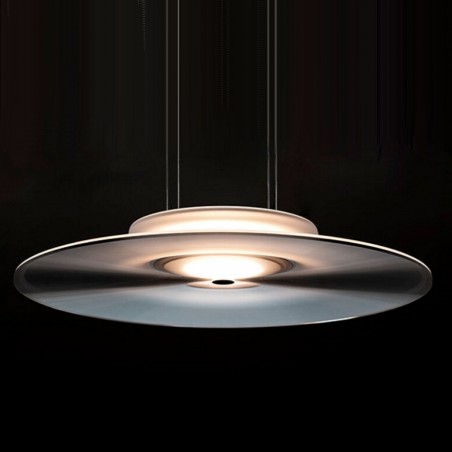 CINI&NILS - Fludd è una sospensione per interni a luce diffusa, dimmerabile. Un disco trasparente con mini-prismature antiabbaglianti, rifrange la luce emessa dall’elemento diffondente superiore e la concentra verso il basso. La luce di Fludd, un led da 30w 2800°K 3800lm, diffusa e schermata rende la versione sospesa adatta per installazioni a qualsiasi altezza. L’alto Indice di Resa Cromatica (CRI) garantisce il rispetto della percezione dei colori e la corretta illuminazione dell’ambiente.