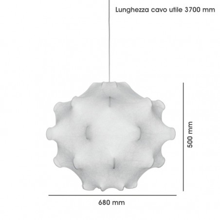FLOS – Taraxacum 1 è una lampada a sospensione a luce diffusa disegnata dai fratelli Achille e Pier Giacomo Castiglioni. Taraxacum 1, storica lampada del catalogo Flos, è caratterizzata da un diffusore realizzato con una speciale resina "Cocoon", spruzzata su un struttura in acciaio preverniciata e protetto a fine lavorazione con una vernice trasparente. Le lampadine utilizzabili possono essere di tipo alogeno 100w o LED 8w con attacco E27, escluse.