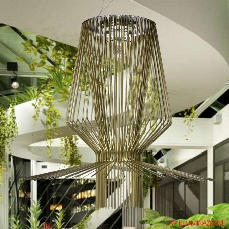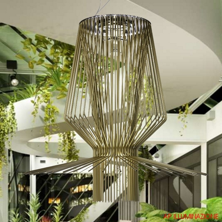 FOSCARINI- Allegro Ritmico è caratterizzata da una struttura in metallo cromato sulla quale sono agganciate una serie di aste in alluminio pieno opportunamente sagomate che danno vita e forma alla lampada. Allegro Ritmico in questa versione tradizionale è dotata di due fonti luminose separate, una diretta con portalampada E27 per l’utilizzo di una lampadina 100w alogena o Led retrofit PAR30 e una indiretta e diffusa con portalampada R7s per l’utilizzo di lampadine alogene fino a 230w o Led retrofit. Le lampadine non sono incluse, mentre la lampada è predisposta di serie per l’accensione separata delle due sorgenti luminose. Allegro Ritmico, che fa parte di una serie di lampade con forme diverse a cui è abbinato uno specifico colore, è in questa versione con finitura in color grafite.