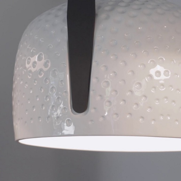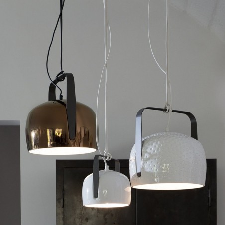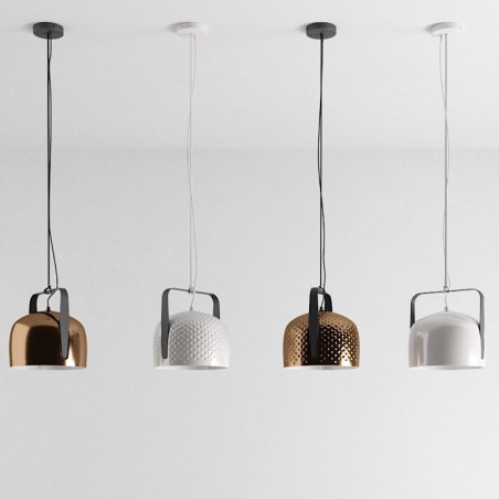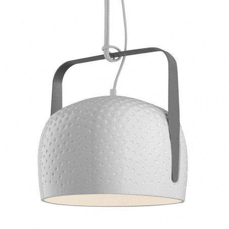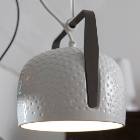 KARMAN - Bag sospensione, disegnata da Baldessari e Baldessari per Karman, incarna tutta la versatilità di una borsa: una calotta dalla forma morbida e accogliente viene sostenuta da un elemento caratterizzante in metallo, “il manico”, che consente di poterla appendere al soffitto. Una fonte luminosa dal carattere ogni volta diverso - luce diretta o più da compagnia - anche in relazione alla dimensione, alla finitura texturizzata o meno e al colore. Una lampada con tutte le caratteristiche di indispensabilità che possiede una borsa, un accessorio necessario da “indossare”, con la disinvoltura di un gesto che fa parte di noi da tempo immemorabile, per avere sempre con sé la nostra dose di luce quotidiana. Bag sospensione è realizzata in ceramica ed è disponibile a scelta in due diverse dimensioni, due diverse finiture e due diverse colorazioni . Dotata di portalampada attacco E27 è possibile utilizzare lampadine, non incluse, di tipo Led con potenza 6W max per la dimensione piccola e 15W per quella grande.