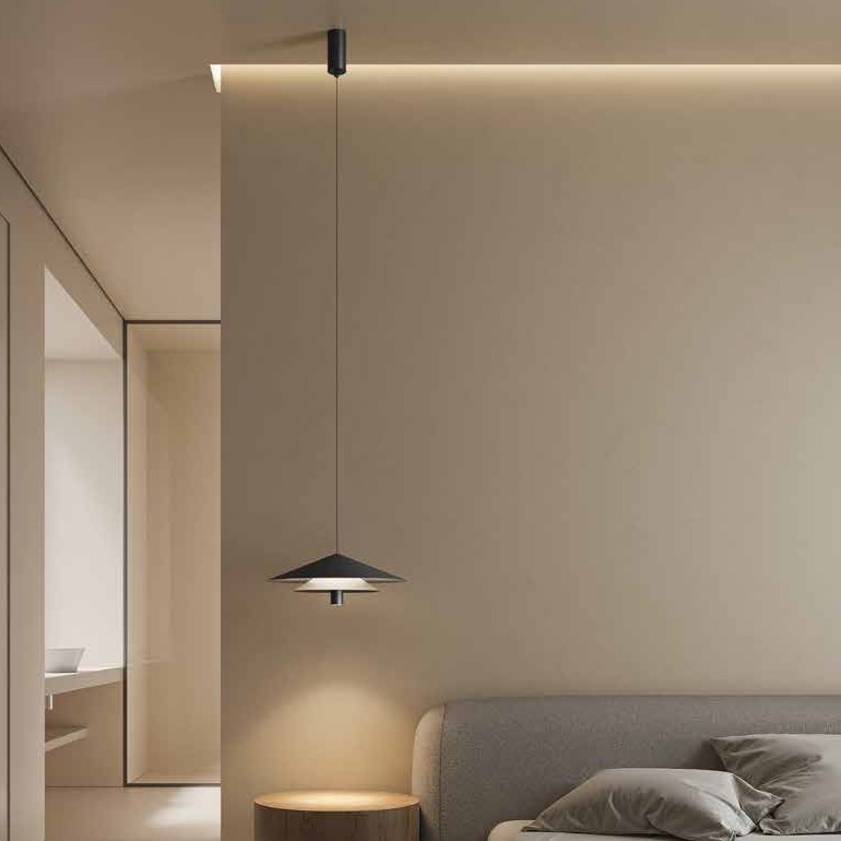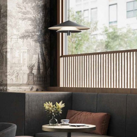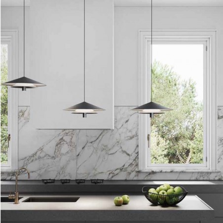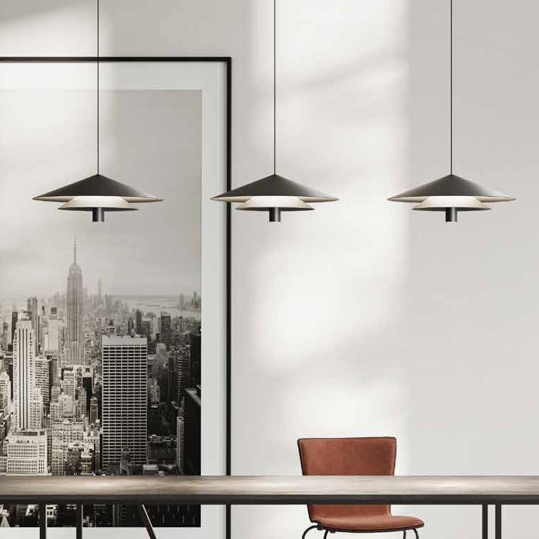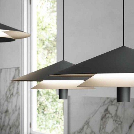 KARMAN – Asso sospensione è un equilibrio perfetto tra forma e funzione, un gioco di luci che trasforma gli spazi e li rende unici. Un disco sospeso che sembra fluttuare, una presenza discreta ma incisiva. Asso è il punto d’incontro tra luce diffusa e illuminazione mirata, tra estetica essenziale e sofisticata tecnologia. Perfetta per la tavola, lo studio o il living, porta con sé un’atmosfera avvolgente e una luceche valorizza ogni momento. Asso non è solo un oggetto d’arredo, è un segno grafico nello spazio, una parentesi luminosa che fa la differenza. Asso è la luce che accompagna i tuoi momenti più belli, con discrezione ed eleganza. Dotata di due sorgenti Led, una da 20,3w 3500lm diffusa, posta all'interno dei coni e una da 2,9w 470lm posta nel cilindro centrale diretta verso il basso.