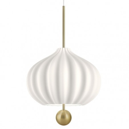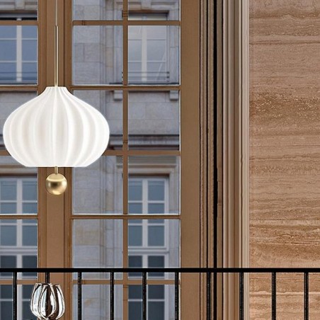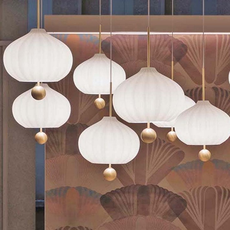 KUNDALINI – Lilli trae ispirazione dall’equilibrio del mondo floreale in cui colori, forme, e dimensioni convivono in perfetta armonia. La lampada a sospensione Lilli richiama la forma del fiore giglio martagone, una pianta di rara eleganza. Allo stesso modo la lampada riempie e illumina lo spazio con un indistinguibile appeal: forme poetiche a cui si abbinano perfettamente il candore del vetro e la delicatezza della struttura in ottone. Dotata di tre portalampada con attacco E14 è possibile utilizzare lampadine alogene da 30w o Led da 6w non incluse.