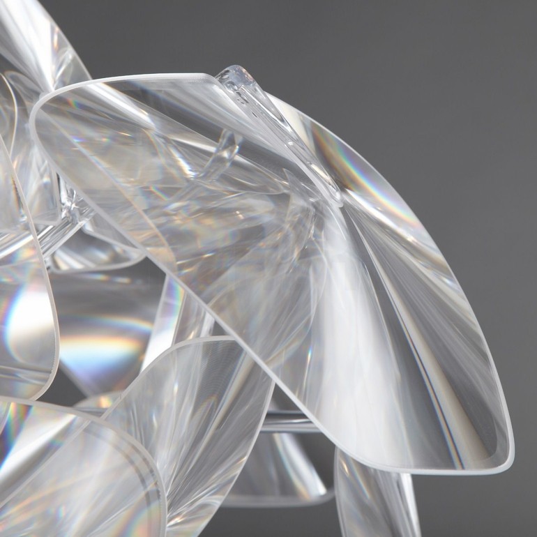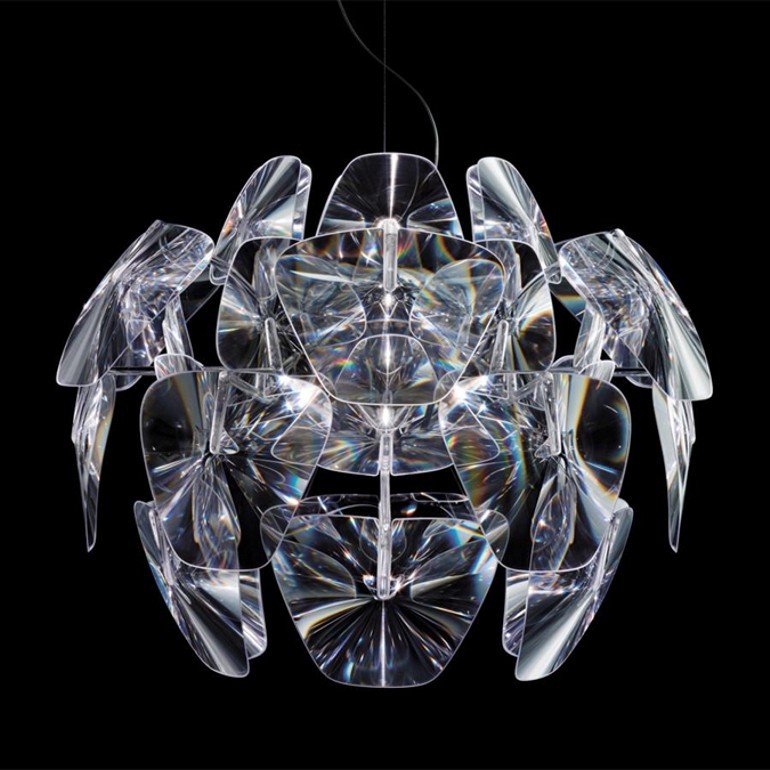 LUCEPLAN – Leggerissima e scomponibile, Hope sospensione ripropone la magia dei lampadari della tradizione, interpretandola con sofisticate tecnologie moderne e materiali contemporanei. Una serie di sottili lenti Fresnel di policarbonato moltiplica la luce della sorgente luminosa, ricreando un gradevole effetto sfavillante, festoso, punteggiato da tanti piccoli riflessi. Hope sospensione, disponibile in tante misure, viene in questa versione proposta in una media dimensione che dotata di portalampada E27 permette di utilizzare sia lampadine alogene fino a 105w che led escluse.