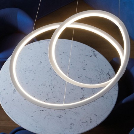 NEMO – Kepler, design Arihiro Miyake, è una lampada a sospensione in alluminio verniciata a polvere nelle finiture nero o bianco. Dotata di sorgente Led da 86w a 2700K o 3000K e una resa di 4500lm, Kepler è disponibile a scelta nelle versioni up o down light, per un’illuminazione diretta o indiretta e diffusa. La linea continua che caratterizza ed esalta il design di questa lampada moderna, adatta per arredamenti contemporanei, è realizzata attraverso un processo di lavorazione tridimensionale dell’estruso di alluminio, disegnata sulla base del principio geometrico del nastro di Moebius.