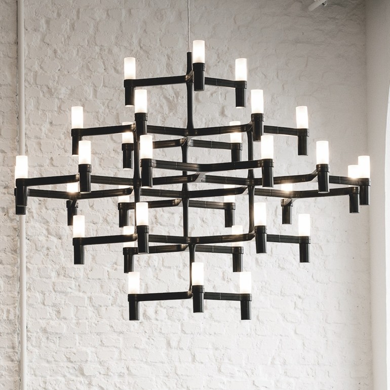 NENO – Crown Major è un chandelier a sospensione realizzato con una struttura modulare in alluminio pressofuso e bicchierini diffusori in vetro sabbiato. La lampada che è disponibile in diverse finiture, adattabili ai molteplici contesti d’arredo sia classici che moderni e contemporanei, è fornita di 30 portalampade G 9 che permettono l’utilizzo sia di lampadine Alogene da 25w o Led, entrambe le tipologie non sono incluse. Lampadario adatta per grandi spazi di condivisione come locali pubblici e commerciali, dove si voglia comunque creare un ambiente elegante e raffinato.