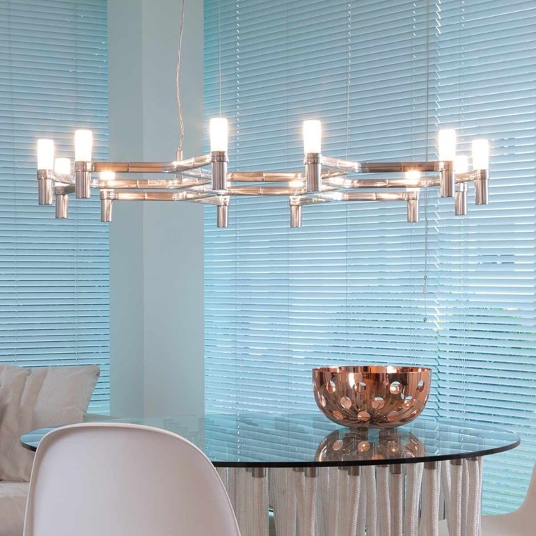 NENO – Crown Plana Minor è un chandelier a sospensione realizzato con una struttura modulare in alluminio pressofuso e bicchierini diffusori in vetro sabbiato. La lampada che è disponibile in diverse finiture, adattabili ai molteplici contesti d’arredo sia classici che moderni e contemporanei, è fornita di 12 portalampade G 9 che permettono l’utilizzo sia di lampadine Alogene da 25w o Led, entrambe le tipologie non sono incluse. Lampadario di dimensioni relativamente contenute, è adatto per spazi sia privati che pubblici di condivisione, come negozi, bar, ristoranti e ambienti commerciali, dove si voglia comunque creare un locale elegante e raffinato.