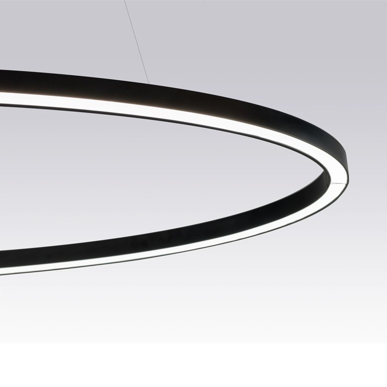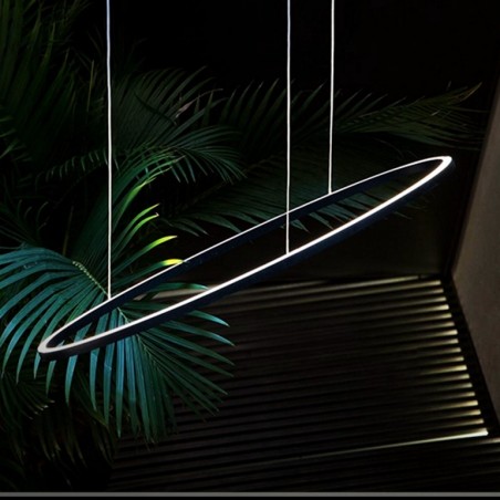 NEMO – Ellisse Major, è una lampada a sospensione realizzata in alluminio estruso con una particolare lavorazione brevettata da Nemo. Disponibile con diverse finiture colore, è possibile scegliere tra la versione down o up light, mentre la temperatura colore dei Led, con una potenza di 66w e un’efficienza luminosa di 3450lm, può essere a scelta tra 3000K e 2700K per tutte le varianti colore, ad eccezione della finitura in oro anodizzato lucido che è disponibile solo con temperatura colore 2700K.