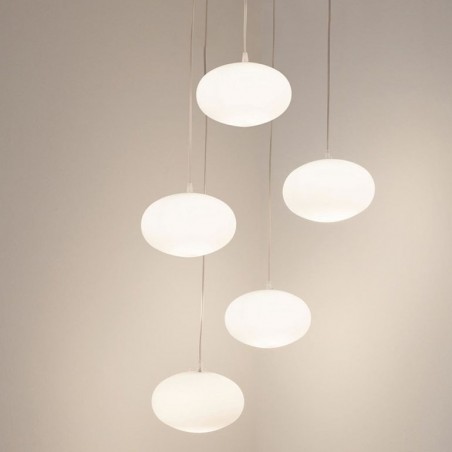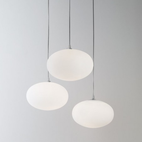 NEMO – Maga, elegante e semplice, con diffusore in vetro soffiato opalino, è una lampada a sospensione classica ma adattabile a qualunque tipo d’arredamento moderno e contemporaneo. Dotata di portalampada E14 è possibile utilizzare lampade Alogene fino a 46W o Led, non incluse. La sua discreta presenza illumina l’ambiente senza farsi notare, lasciando ad altri elementi come oggetti e mobili il compito di caratterizzare e delineare lo stile del locale. Adatta per creare composizioni di più lampade in suggestive cascate di luce.