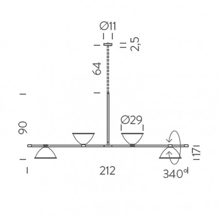 - L212 H90/154 cm. - Diffusori Ø29 H17 cm -