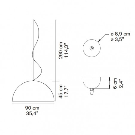 - Ø90 H45 cm. oppure Ø133 H61 cm. + Cavo 240 cm.