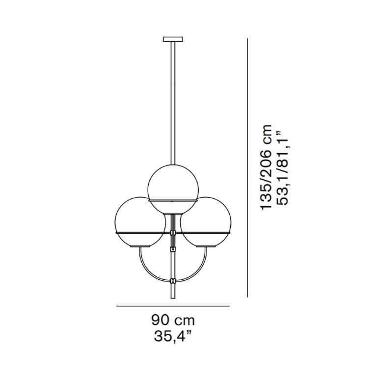 OLUCE - Lyndon sospensione fa parte di un progetto di Vico Magistretti nato nel 1977 e sviluppatosi negli anni in una vasta collezione che include molteplici varianti e dimensioni: per interni e per esterni, a sospensione, da terra o da parete. Lyndon sospensione è caratterizzata da una struttura a candelabro che cinge delle sfere in vetro trasparente al cui interno sono contenuti i bulbi luminosi, lampadine non incluse, che a scelta possono essere di svariate tipologie energetiche, alogene, fluo o Led. L’amore dell’architetto e designer per le forme semplici e geometriche ritorna magistralmente con questo progetto, riportando alla contemporaneità tempi perduti e atmosfere da grande capitale europea di fine ‘800 in un oggetto quanto mai attuale.