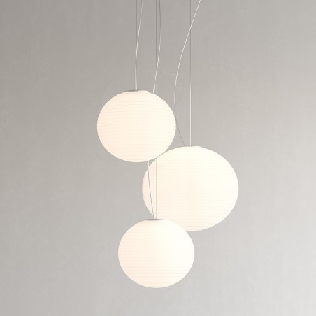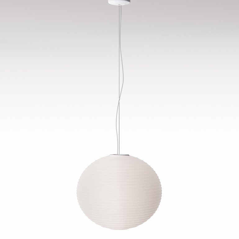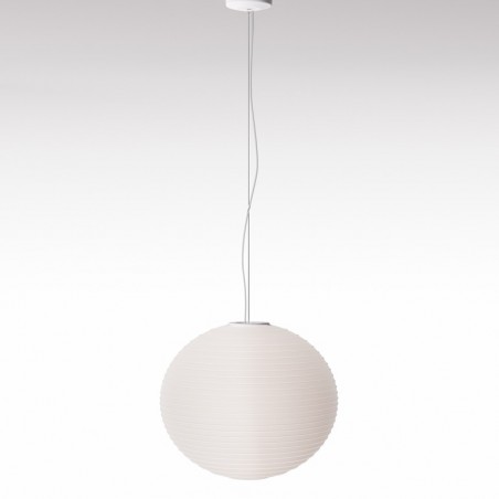 ROTALIANA - Flow Glass H1 è una lampada a sospensione caratterizzata da un diffusore in vetro ad anelli concentrici in rilievo, geometria che richiama le lanterne in carta orientali, da dove la luce si diffonde nell’ambiente. Dotata di un portalampada E27 è possibile utilizzare lampadine Led Retrofit dimmerabili non incluse.