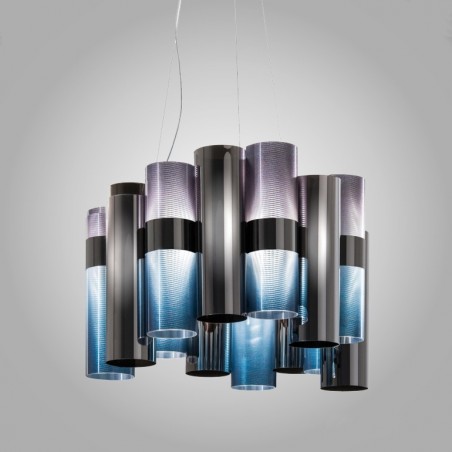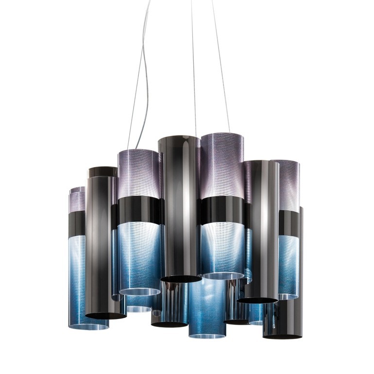 SLAMP – La Lollo è, in questa versione più piccola della serie, una sospensione dal tratto aggraziato, composto da innumerevoli cilindri di tecnopolimeri brevettati, con la possibilità di alternare colorazioni prismatiche, metalizzazioni, merletti, gradienti cromatici contemporanei e disegni geometrici, a secondo della finitura scelta, che sono disposti intorno a un anello luminoso centrale con una sorgente led da 40w. Lampada dal design molto particolare è un oggetto d’arredo e nel contempo una fonte luminosa di notevole impatto.