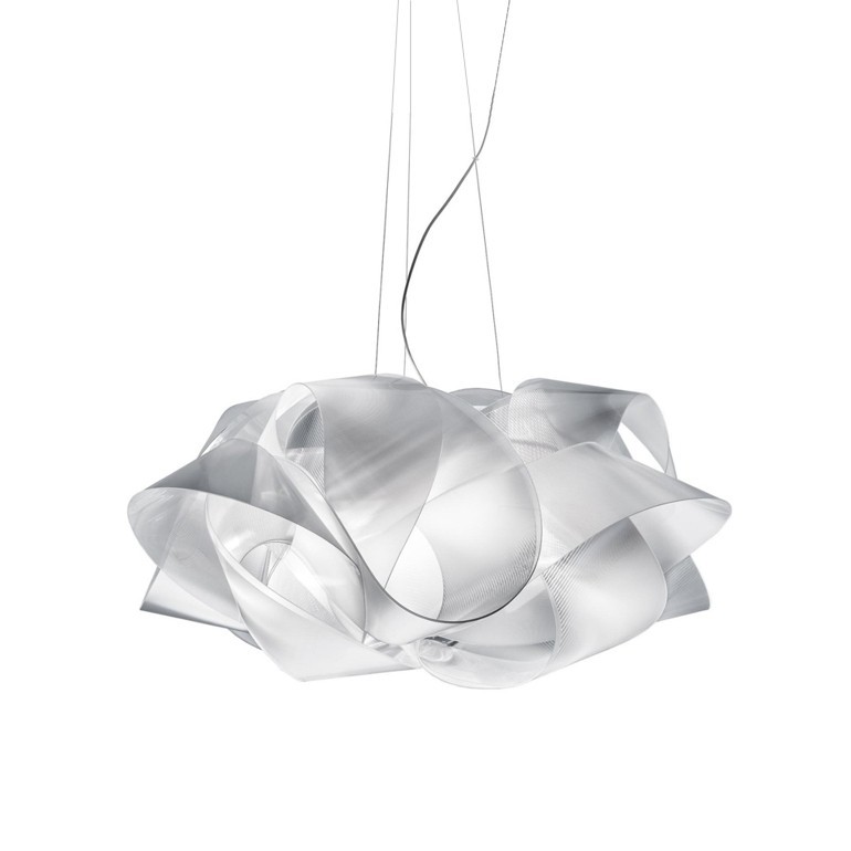 SLAMP – Fabula sospensione è una lampada realizzata a mano concatenando elementi di Lentiflex, che ricordano una lunga e soffice fascia di seta avvolta su se stessa. La lampada è in questa versione di diametro 48 cm provvista di tre portalampade E27, che permettono l’utilizzo di lampadine Led fino a 10w non incluse. Una lampada dal design molto particolare che non mancherà di arricchire gli spazi e gli ambienti in cui si deciderà di inserirla