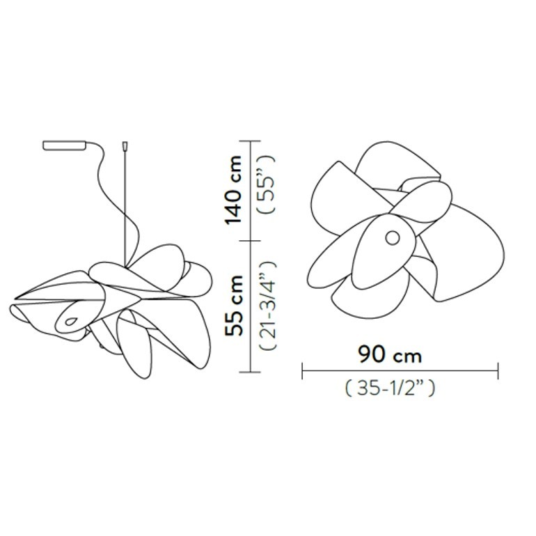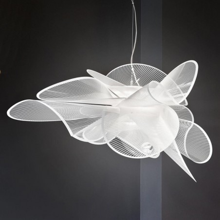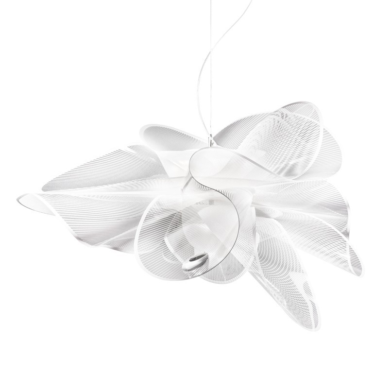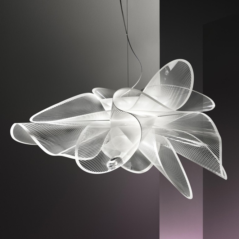 SLAMP – La Belle Etoile Large è una lampada a sospensione leggera ed elegante che prende nome e ispirazione dal mondo della danza. In perfetto equilibrio su forme impalpabili e aggraziate, realizzate in Cristalflex con superfici trasparenti arricchite di una texture bianca stampata, questa versione è caratterizzata da un innovativo attacco magnetico che permette di staccare e rimuovere con facilità il circuito LED, realizzato ad hoc per operazioni di manutenzione o sostituzione. Lampada di grande presenza sa riempire di luce e arredare ambienti anche di grandi dimensioni, adatta quindi sia per un uso privato che per illuminare ambienti pubblici e ricettivi come ristoranti, bar, negozi e locali alla moda dove con la sua presenza si voglia dare un tocco di eleganza ed esclusività. Dotata di led integrato da 35w per una luce diffusa e avvolgente.