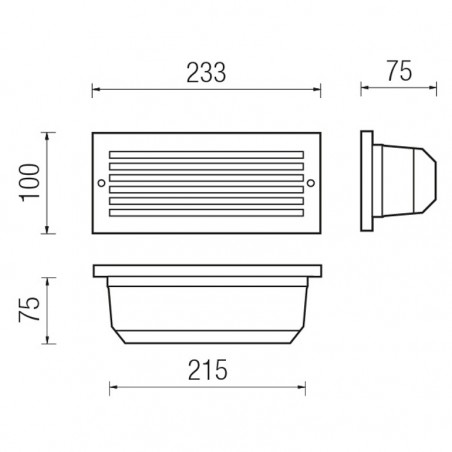 - L233 H100 P75 mm.