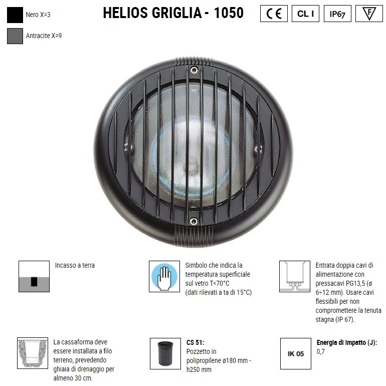 BOLUCE – Helios pavimento, disponibile a scelta in colori diversi, è una lampada per esterno fornita di cassaforma per incasso a terra dotata di portalampada E27 e lampadina LED PAR30 10w 3000K inclusa. Helios pavimento se istallata correttamente e secondo istruzioni di montaggio, ha un grado IP67 e vi permetterà di illuminare i vostri spazi esterni, il vostro giardino, il terrazzo, la veranda, il vialetto e in generale il vostro outdoor.