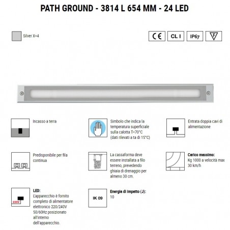 BOLUCE – Path Ground è una lampada per esterno e interno in alluminio, color silver, fornita di cassaforma per incasso a pavimento, disponibile in diverse lunghezze, potenze e temperature colore della luce. Le lampade della serie Path Ground sono utilizzabili singolarmente, ma anche in combinazioni di più moduli e ogni singola lampada è dotata di alimentatore posizionato all’interno dell’apparecchio, funzionante quindi con normale corrente 220/240v. Path Ground se istallata correttamente e secondo istruzioni di montaggio, ha un grado IP67 e vi permetterà di illuminare i vostri spazi esterni, il vostro giardino, il terrazzo, la veranda e il vostro outdoor, ma anche interni abitativi come corridoi, scale, disimpegni, o addirittura come luce morbida e rilassante in sala e soggiorno.