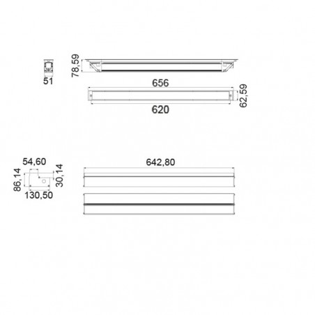 - Modello lunghezza 654 mm - 24 LED 16,8W 4000K 2600lm o 3000K 2200lm