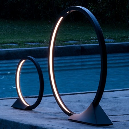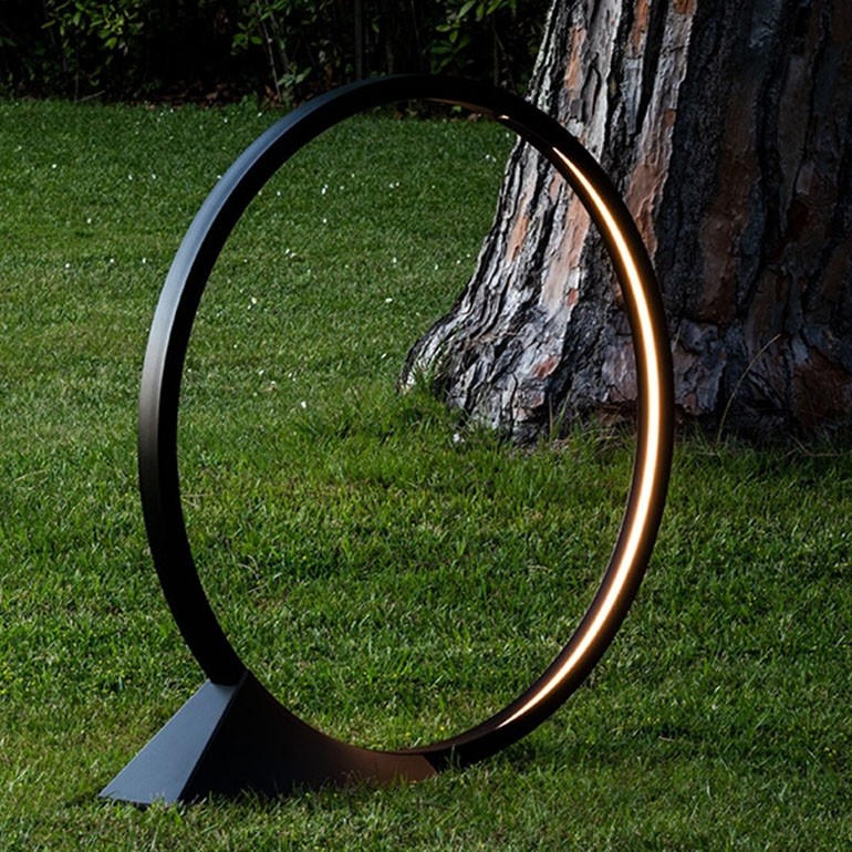 ARTEMIDE – “O” Outdoor 150, in questa versione di dimensioni importanti, è una lampada da terra per esterno con una singolare forma che, quando non in uso, può essere il più impercettibile possibile, una luce senza una lampada. “O” Outdoor 150 dotata di sorgente luminosa Led 60w 3000K 3126lm è realizzata in alluminio verniciato nero con diffusore in silicone.