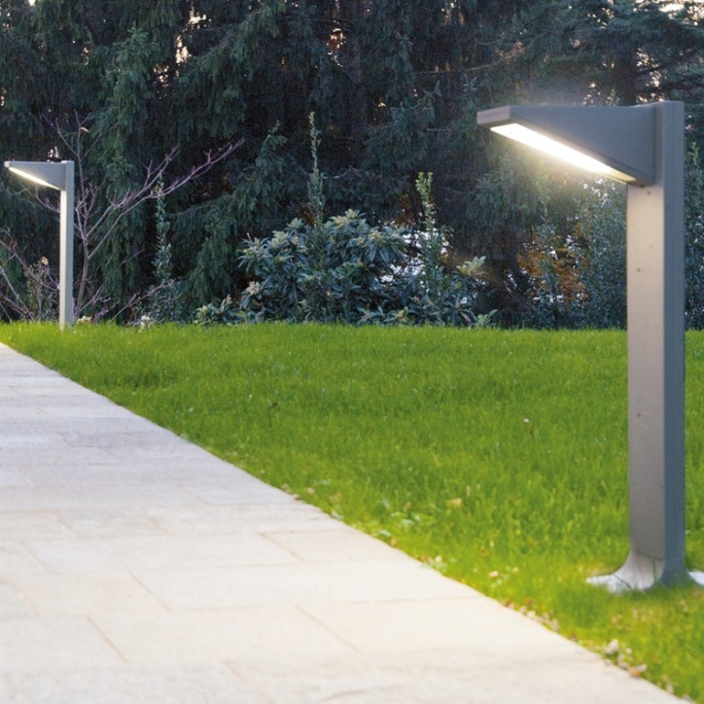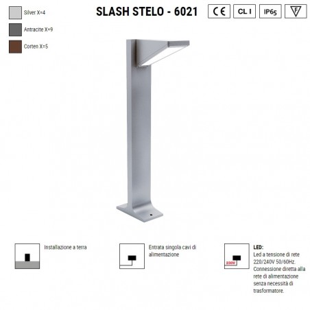 BOLUCE –Slash stelo è una lampada da esterno per istallazione a terra in alluminio e vetro, con più finiture di colore e una sorgente luminosa a Led integrata da 13w con temperatura colore a scelta 3000K o 4000K 1790lm. Slash stelo, dalla forma particolare e con grado IP65, vi permetterà di illuminare con personalità ed eleganza i vostri spazi esterni come prati, viali e angoli particolari del vostro outdoor.