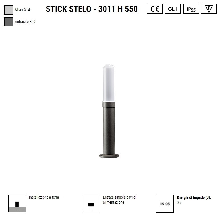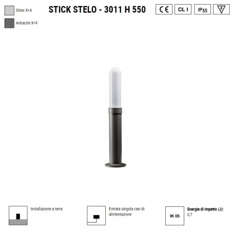 BOLUCE –Stick stelo, disponibile in due diverse altezze, è una lampada da esterno per istallazione a terra in alluminio e policarbonato, con più finiture di colore e dotata di portalampada E27 con relativa lampadina LED da 9,5w che può essere a scelta con temperatura colore 3000K o 4000K e 1050lm. Stick dalla linea decisamente semplice e con grado IP55, vi permetterà di illuminare con personalità ed eleganza i vostri spazi esterni come prati, viali e angoli particolari del vostro outdoor.