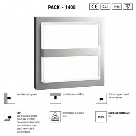 BOLUCE - Pack 1408 è una lampada per illuminazione da esterno utilizzabile sia a parete che a soffitto, realizzata in alluminio pressofuso e vetro, disponibile in più finiture di colore e dotata di Led integrato da 12,9w che può essere a scelta con 3000K o 4000K 1500lm. Pack 1408, dalla forma decisamente moderna e con grado IP65, vi permetterà di illuminare con personalità ed eleganza i vostri spazi esterni come balconi, verande, terrazzi, porticati e angoli particolari del vostro outdoor.
