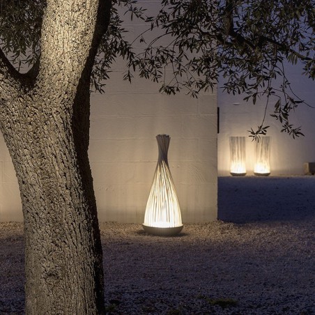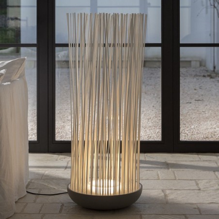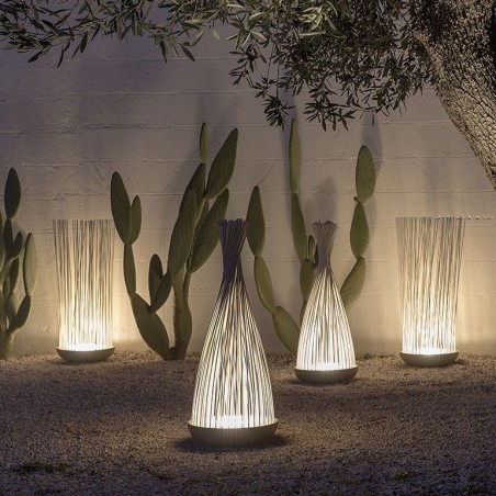 KARMAN – Con la lampada Don’t Touch outdoor è possibile rendete gli esterni un luogo unico e straordinario, grazie infatti alle sue linee stilizzate, le sue dimensioni generose (Ø 42 x H 108 cm) e la sua nota di modernità, il terrazzo, la veranda o un angolo salotto outdoor, diventerà il punto focale del vostro spazio all’aperto. Specialmente ideata per resistere in esterno con un grado IP65, questa lampada si compone di una base leggermente arrotondata in tecnopolimero color grigio opaco, sulla quale si appoggiano diversi steli lineari in PVC bianco. Questa disposizione originale può essere lasciata così, con gli steli liberi, o raccolti con l'aiuto di un anello in silicone (fornito in dotazione). La sorgente luminosa di Don’t Touch, un Led da 29w 2600lm con possibilità a scelta di luce 3000K o 2700k, posto nella base crea tra gli steli un suggestivo scenario di luce. Una lampada meravigliosa, un oggetto di design outdoor che posizionata sola, o in una bella composizione, saprà creare un meravigliosa luce d’ambiente, ideale per illuminare un terrazzo, un giardino, un viale o a bordo piscina.