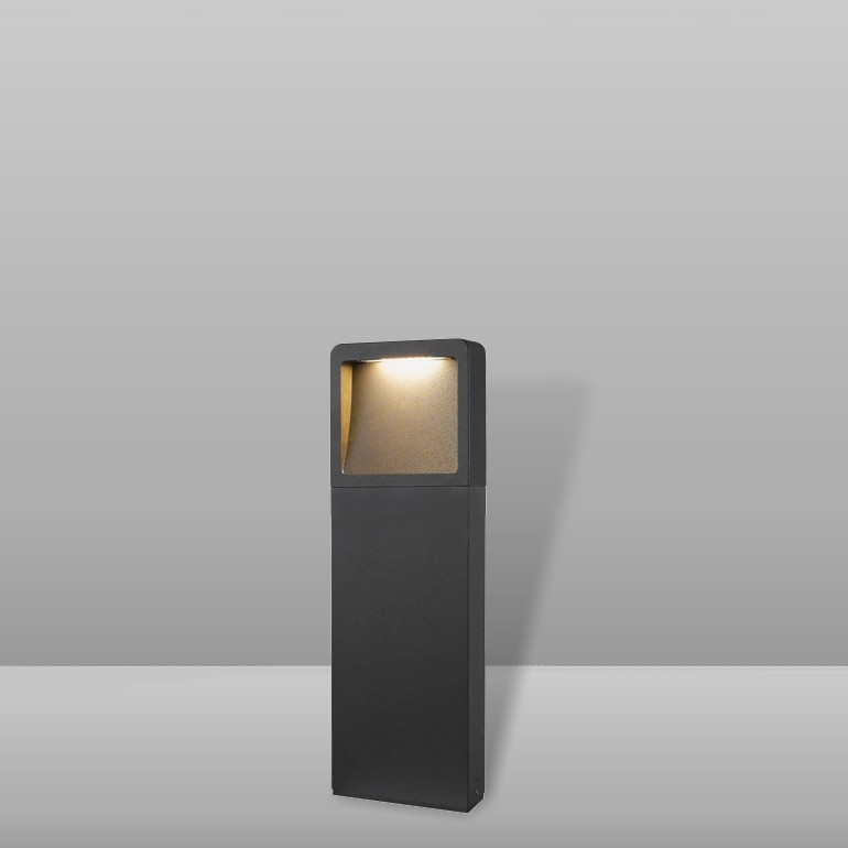 ROSSINI ILLUMINAZIONE - Brad Basso, paletto LED 7w 600lm (3000K) da terra per esterno (IP54), in pressofusione di alluminio verniciato a polvere in color antracite, con pretrattamento per uso esterno. Vetro di protezione del LED opaco e alimentatore LED integrato.