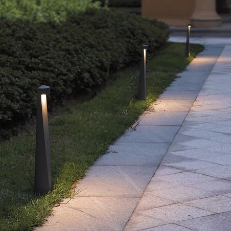 ROSSINI ILLUMINAZIONE - Paletto LED da terra per esterno (IP65) con un'altezza di 40 cm. Struttura in pressofusione di alluminio, verniciato in color antracite con polveri poliestere ad elevata resistenza ai raggi ultravioletti e alla corrosione. Alimentatore integrato e Led da 7W con una resa di 777lm. Disponibile in due temperature colore (3000K e 4000K).