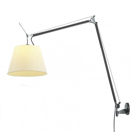 ARTEMIDE - Tolomeo Mega Led parete, costituita da un a struttura a bracci mobili, con la possibilità di scegliere fra un dimmer sul corpo lampada o sul cavo, in color alluminio o nera, con possibilità di tre differenti misure di paralumi in color raso grigio, pergamena o tessuto nero, risulta essere componibile a piacere secondo il proprio gusto ed esigenza. Tolomeo Mega Led parete dispone di un potente led da 31w con possibilità di scegliere fa 2700k e 3000K. La resa luminosa ovviamente varia in base alla scelta della dimensione e colore del paralume. Avremo quindi: con paralume 32 Pergamena 1868lm con 2770K e 1999lm con 3000K, - con paralume 36 Pergamena 1871lm con 2700K e 2002lm con 3000K - con paralume 42 Pergamena 1884lm con 2700K e 2016lm con 3000K - con paralume 32 Raso Grigio 1770lm con 2700K e 1894lm con 3000K – con paralume 36 Raso Grigio 1786lm con 2700K e 1912lm con 3000K - con paralume 42 Raso Grigio 1789lm con 2700K e 1912lm con 3000K – con paralume 32 Tessuto Nero 1579lm con 2700K e 1690lm con 3000K – con paralume 36 Tessuto Nero 1571lm con 2700K e 1681lm con 3000K – con paralumen 42 Tessuto Nero 1582lm con 2700K e 1693lm con 3000K.