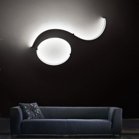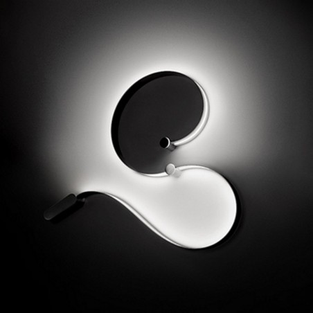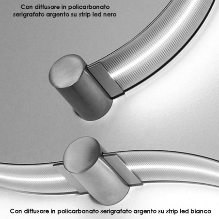 CINI&NILS - FormaLa2 è una lampada da interni a sorgente Led dimmerabile da 2x24w 2x200lm, con possibilità di scegliere tra temperatura colore della luce 2700K o 3000K, inoltre il lato del nastro dove è collocato lo strip Led può essere a piacere in color bianco o nero, mentre la parte opposta del nastro è disponibile unicamente in acciaio satinato. Previsto come accessorio opzionale un diffusore realizzato in film di policarbonato serigrafato in colore argento, da collocare sopra lo strip led e applicabile a lampada già installata con i magneti forniti, utile a uniformare e diffondere la luce. Fornita di alimentatore integrato, inserito nell’elemento ovale situato in una delle estremità della struttura, FormaLa2 è un nastro di luce da modellare a proprio piacimento.