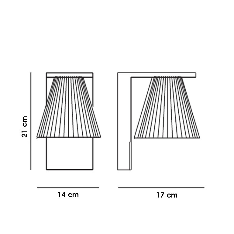 KARTELL – Light-Air parete, ideale per un interno contemporaneo, con il suo design essenziale e grafico in linea con lo stile del marchio, è caratterizzata da un diffusore che anziché essere retto semplicemente da un braccetto, si presenta appeso ad una struttura rettangolare a elle in tinta su trasparenza. Le finiture possibili sono oltre che per colore anche per la grafica del paralume che può essere a scelta o in versione sculturata o in versione plissè che in tal caso cela al suo interno un tessuto appunto plissettato beige. Dotata di portalampada E14 è possibile utilizzare esclusivamente lampadine Led a 5w inclusa .