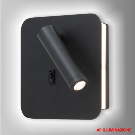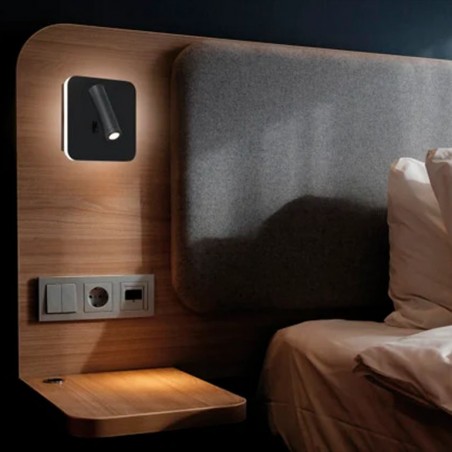 ROSSINI ILLUMINAZIONE - My Way, lampada a parete a LED (3000K) da lettura orientabile di 355° rispetto all’asse verticale e rispetto all’asse orizzontale di 90° verso l’alto. Struttura in alluminio dal design moderno, con doppio interruttore che permette di attivare la retroilluminazione da 9w per una luce di cortesia e il proiettore da lettura orientabile da 3w per un fascio di luce concentrato. Perfetta per installazioni in camere da letto residenziali e in ambito hospitality.