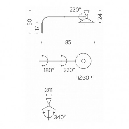 NEMO – Lampe de Marseille Mini, disegnata da Le Corbusier per il suo appartamento di Marsiglia nel 1949, è una lampada da parete con attacco alla base rotante, bracci snodati in alluminio e diffusore a doppia emissione luminosa in lastra tornita. Disponibile in diversi colori, Lampe de Marseille Mini è dotata di due portalampada E14 che permettono l’utilizzo di lampadine alogene fino a 46w, oppure Led compatibili con le dimensioni del diffusore, entrambe non incluse. La lampada prevede inoltre il cavo di alimentazione con spina e interruttore. Design molto particolare e Vintage, questa particolarissima lampada si inserisce perfettamente in qualunque arredo e ambiente, sia classico che moderno e contemporaneo.
