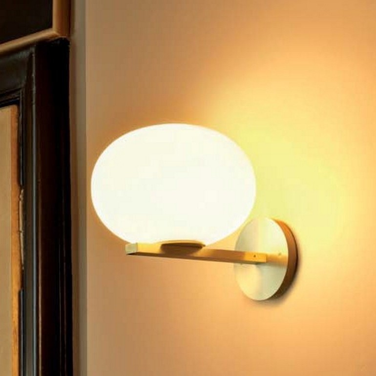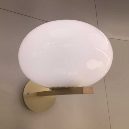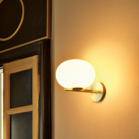 OLUCE - Il concept di Alba parte da un elemento molto semplice, ispirato nell’immaginario della designer ad una goccia d’acqua – utilizzata in modi diversi a seconda del modello. Riferimenti al mondo della natura, forme morbide contrapposte a linee squadrate, insieme all’utilizzo della finitura ottone satinato danno vita con Alba parete a una serie di lampade dal grande impatto visivo. Nella versione da parete, la goccia si appoggia delicatamente su un profilo dorato a sezione rettangolare, fungendo da supporto e da ornamento della lampada. Dotata di un portalampada E27 è possibile utilizzare una lampadina da 60W Halo o LED entrambe non incluse.