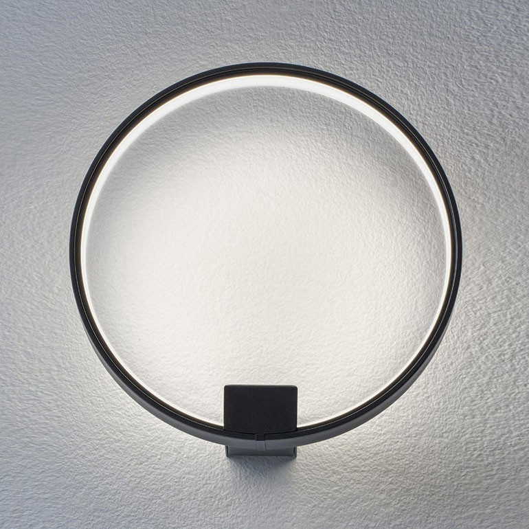 PANZERI – Zero Round parete, è un anello in alluminio estruso curvato, con schermo in policarbonato opale, disponibile in più finiture cromatiche con una sorgente Led da 13w con temperatura colore della luce 2700K. La lampada fornita di driver on-off