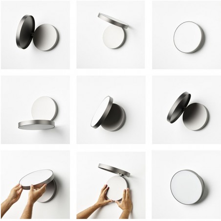 ROTALIANA - Venere W1 è una lampada a luce diffusa da installare a parete o a soffitto. La sorgente LED, di grande efficienza luminosa, 25w che a scelta può essere con temperatura colore 2700°K o 3000°K e una resa di 2100lm, è disponibile con semplice accensione e spegnimento oppure con dimmerazione Push o DALI. Il corpo, composto da due elementi sovrapposti e incernierati tra di loro, è una fusione in alluminio mentre il diffusore è in policarbonato opalino stampato ad iniezione. La lampada, sottile ed elegante, è perfettamente integrata nelle superfici delle pareti ma si può aprire fino a 96° e ruotare in modo da consentire l'orientamento della luce in tutte le direzioni desiderate. La forma circolare ed il movimento della lampada ricordano un occhio che rivolge lo sguardo intorno a sé oppure l’occhio di una Venere affetta da strabismo, leggendario elemento di fascinazione estetica.