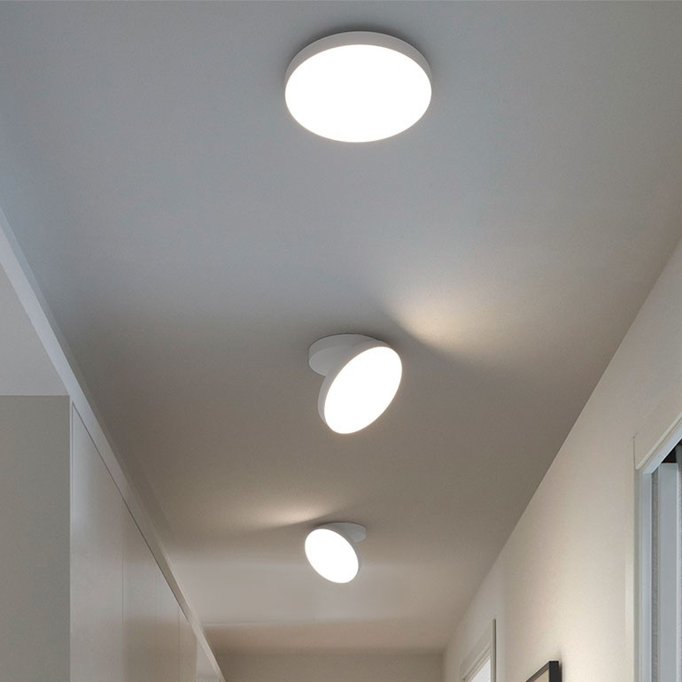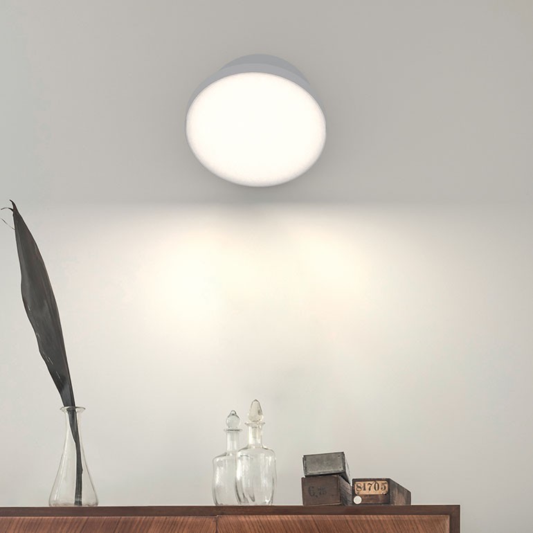 ROTALIANA - Venere W1 è una lampada a luce diffusa da installare a parete o a soffitto. La sorgente LED, di grande efficienza luminosa, 25w che a scelta può essere con temperatura colore 2700°K o 3000°K e una resa di 2100lm, è disponibile con semplice accensione e spegnimento oppure con dimmerazione Push o DALI. Il corpo, composto da due elementi sovrapposti e incernierati tra di loro, è una fusione in alluminio mentre il diffusore è in policarbonato opalino stampato ad iniezione.