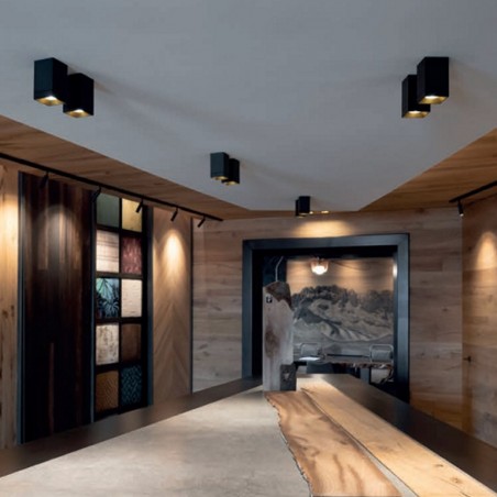 BIFFI LUCE - Stilo Quadro, la pulizia delle forme abbinata a finiture caratterizzate da un design accattivante, per creare un ambiente sofisticato senza rinunciare alla semplicità. Stilo è un apparecchio a plafone. Disponibile nelle due colorazioni bianco e nero, personalizzabile con anello coordinato o a contrasto bianco, nero e oro. Apparecchio realizzato in alluminio e predisposto per l’utilizzo di sorgenti luminose a LED con attacco GU10.