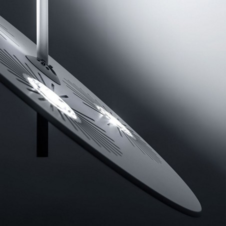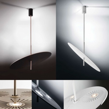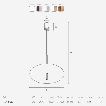 ICONE – Luà 60 soffitto, realizzata in alluminio e con diverse possibili scelte di finitura colore, è una lampada caratterizzata da un grande disco orientabile che integra tre sorgenti luminose a Led da 30w 3000K 2550lm per una potenza totale di 90w e 7650lm. Lampada molto originale e con grande personalità, adatta ad illuminare ambienti di grandi dimensioni come sale da pranzo, soggiorni e salotti, ma anche ambienti pubblici e di lavoro come bar, negozi e locali commerciali.