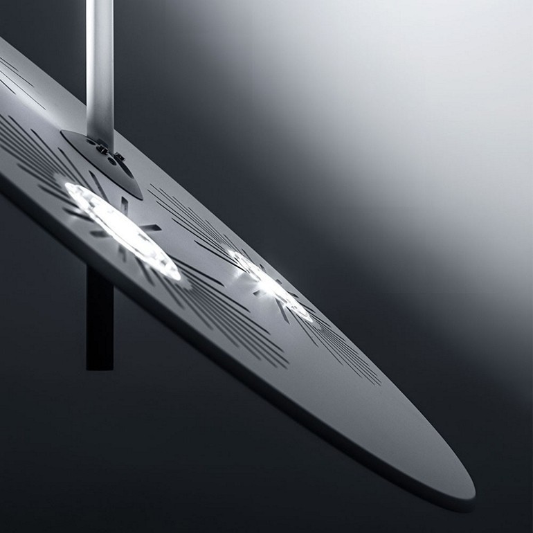 ICONE – Luà 60 soffitto, realizzata in alluminio e con diverse possibili scelte di finitura colore, è una lampada caratterizzata da un grosso disco orientabile che integra tre sorgenti luminose a Led da 30w 3000K 2550lm per una potenza totale di 90w e 7650lm. Lampada molto originale e con grande personalità, adatta ad illuminare ambienti di grandi dimensioni come sale da pranzo, soggiorni e salotti, ma anche ambienti pubblici e di lavoro come bar, negozi e locali commerciali.